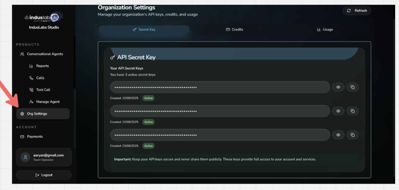 Need an API Key? If you don't have an API key yet, you can create one here: https://playground.induslabs.io/register